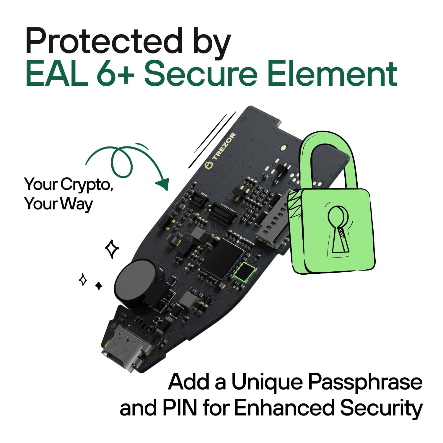 - Requires initial setup for beginners.Why You’ll Love It:Embrace the peace of mind that comes with knowing your digital assets are protected by one of the most trusted names in crypto security. The Trezor Safe 5 not only offers top-notch protection but also makes crypto management effortless and enjoyable. Whether you’re a seasoned investor or new to the crypto world, this hardware wallet is designed to meet all your needs, ensuring you stay ahead in the fast-evolving digital landscape. Secure your future with Trezor Safe 5 today!